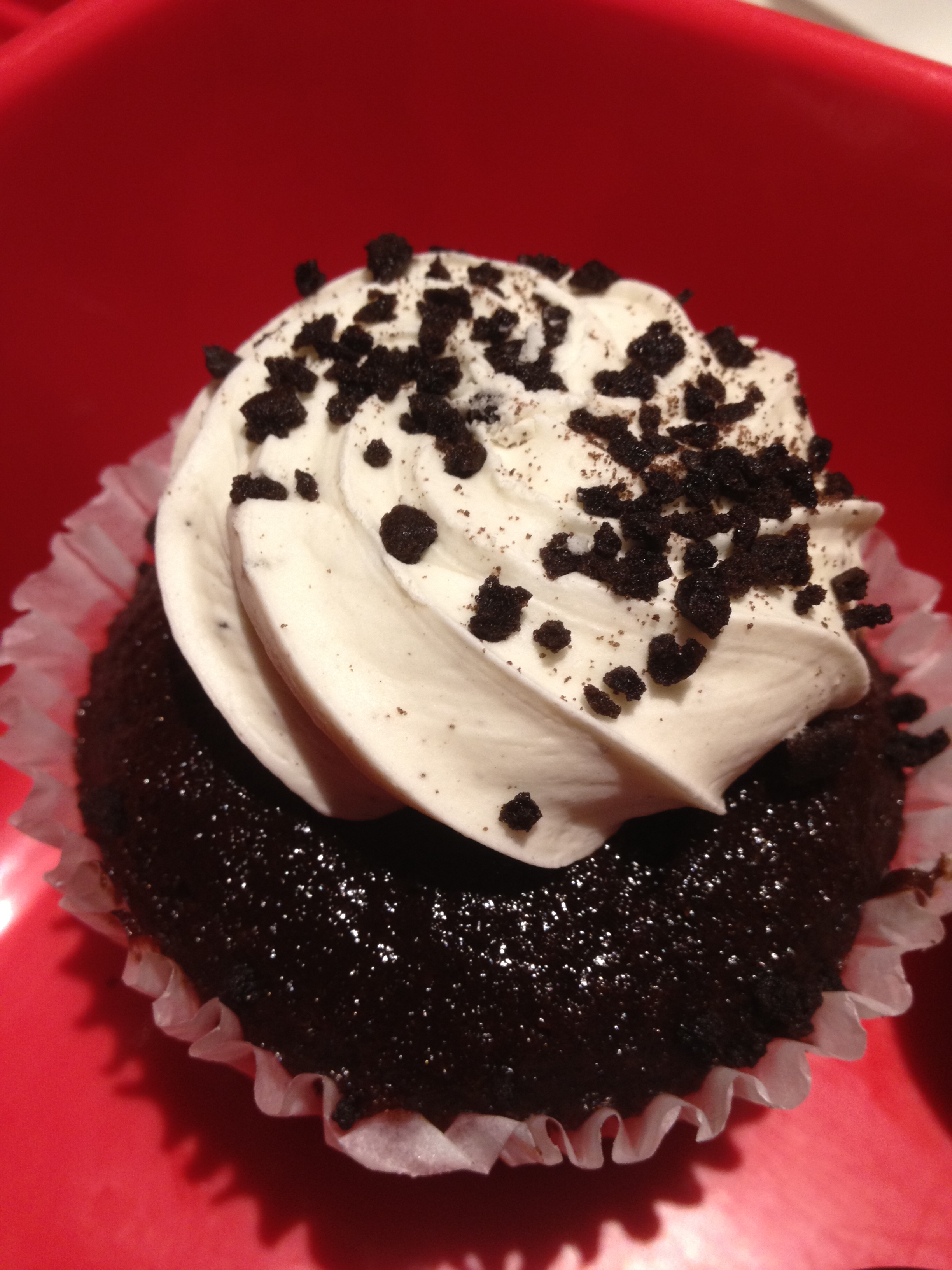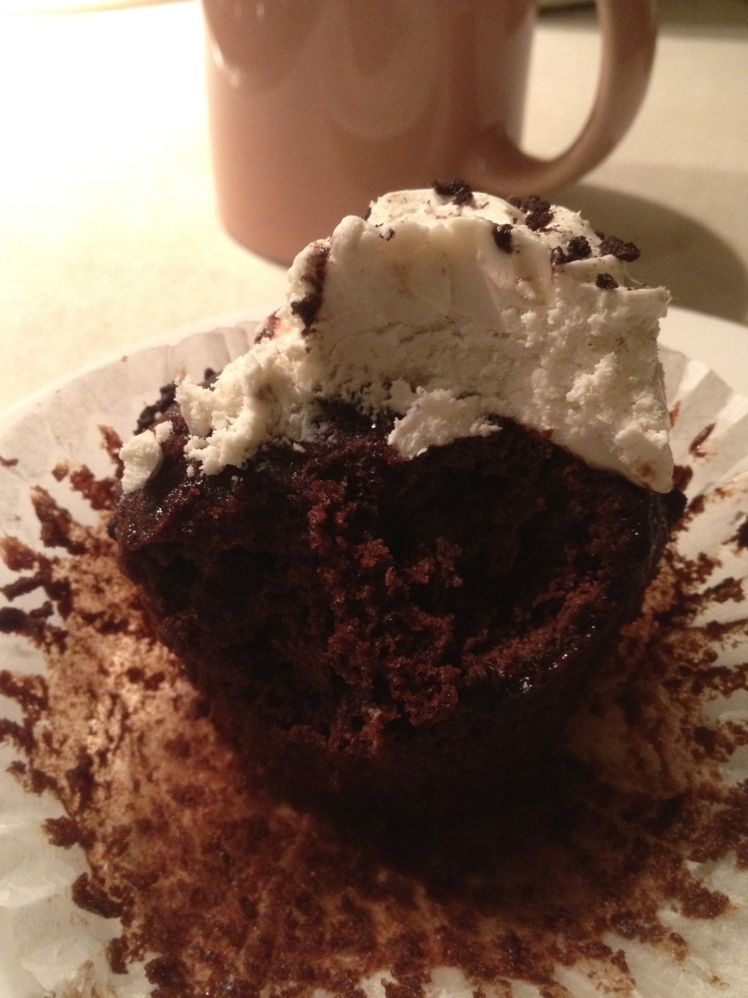 Once I’d arrived home with the shopping and started unpacking, I realised I’d left a bag of groceries at the checkout. The bag with the veggies, tuna and soup in it. But I had the bag with the cupcakes, clutched in my fat little hand. How’s that for convenient?