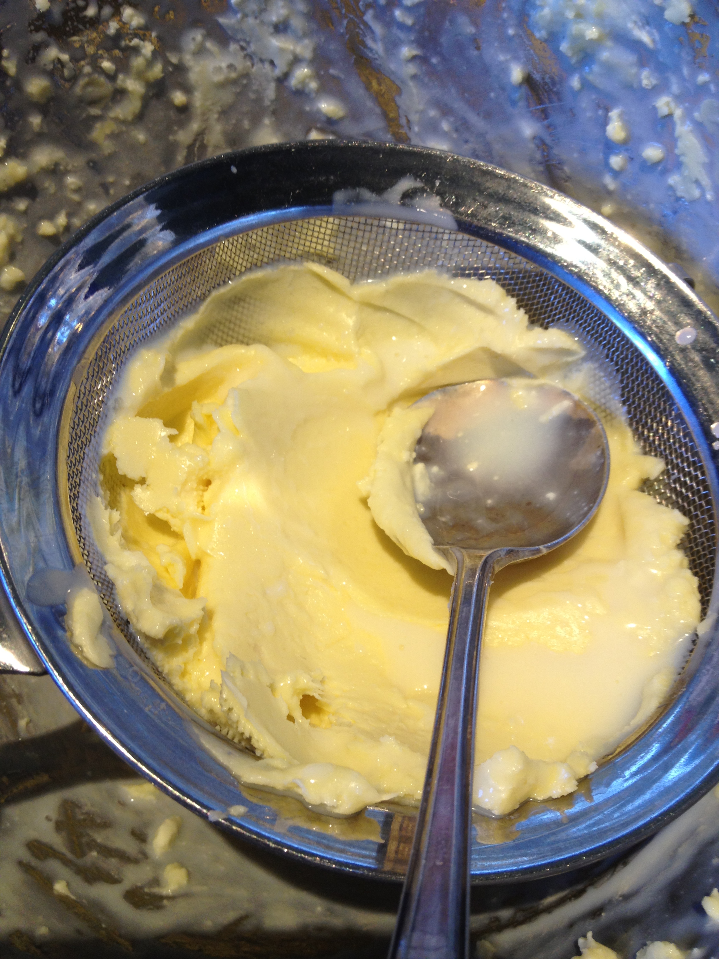 Pressing out the buttermilk through a strainer was strangely satisfying.