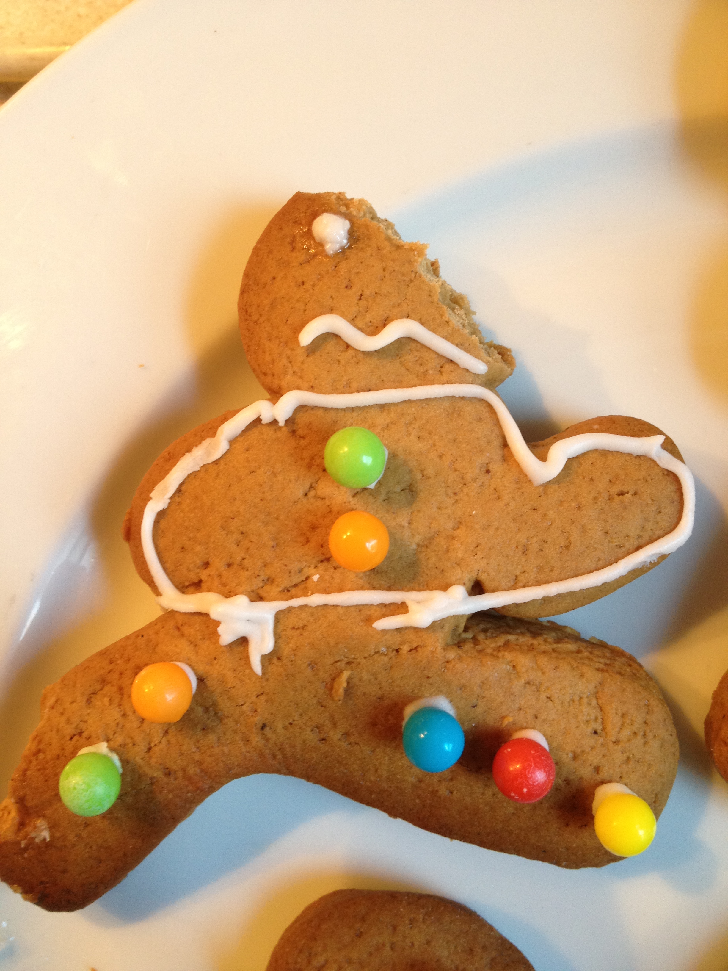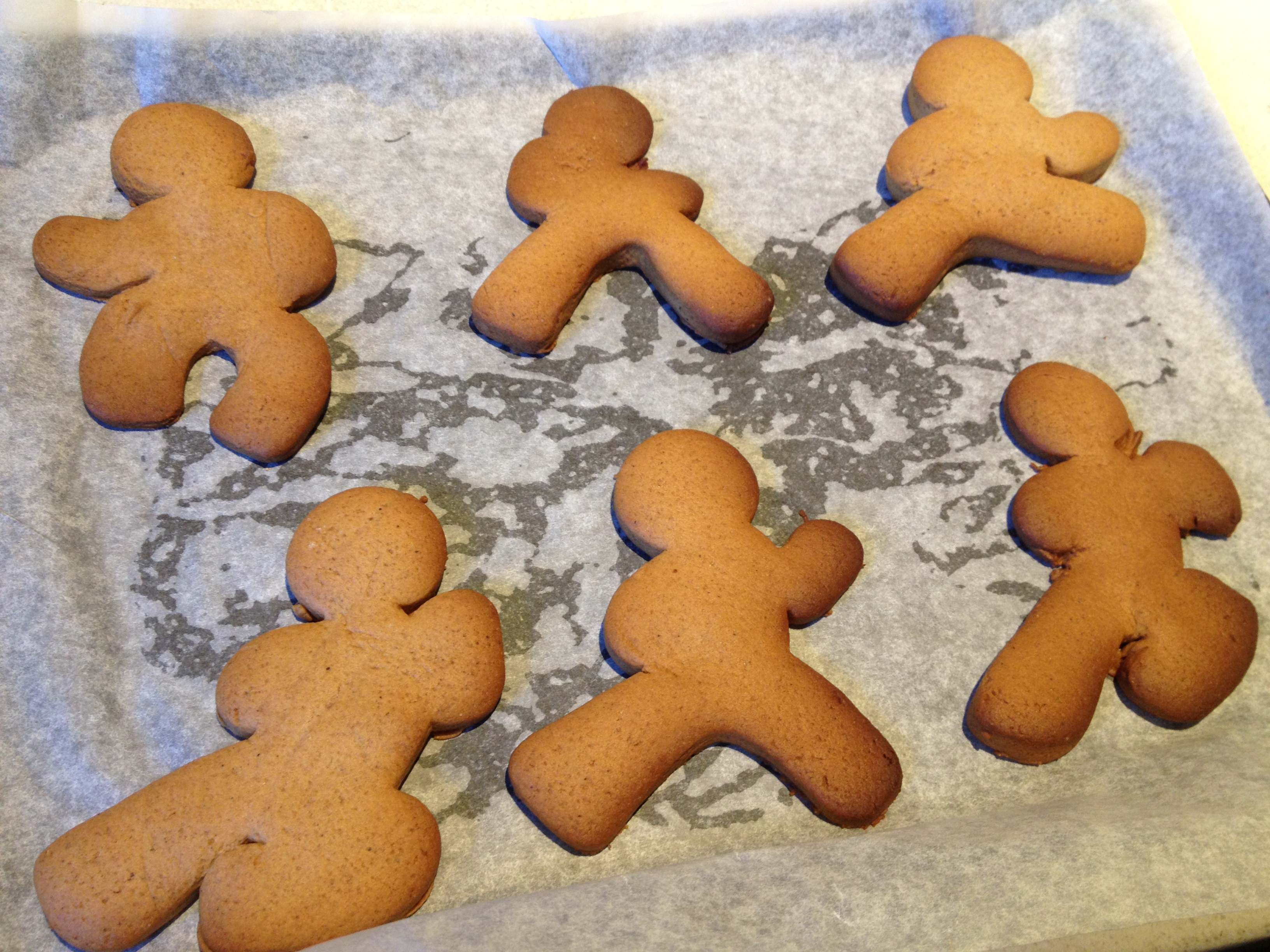 So my Easter baking this weekend was the ninja-bread men from a baking set I’d bought as a stocking-filler for Spider Boy at Christmas. They weren’t hot cross buns, but they were pretty cross. That’s now our ninjas roll.