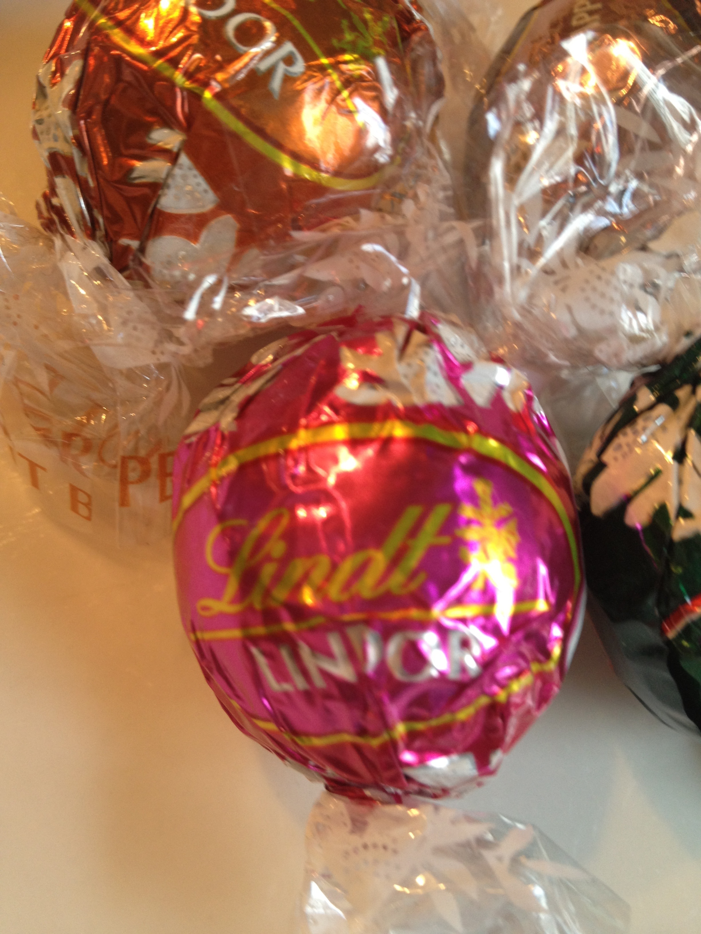 Last Saturday I went to The Winter Festival at Darling Harbour (on until July 13) with Spider Boy and his Dad. Beautiful sunny weather with “snow” thrown in. Winter Fest could also be known as Fat, Sugar and Carb fest, what with the plethora of potato-on-a-stick, sugary donuts shaped like a stick, and there was probably some kind of meat-on-a-stick. Then there were the Lindt balls. I couldn’t resist stopping at the pop-up Lindt shop for a selection… including cappuccino and raspberry flavour.