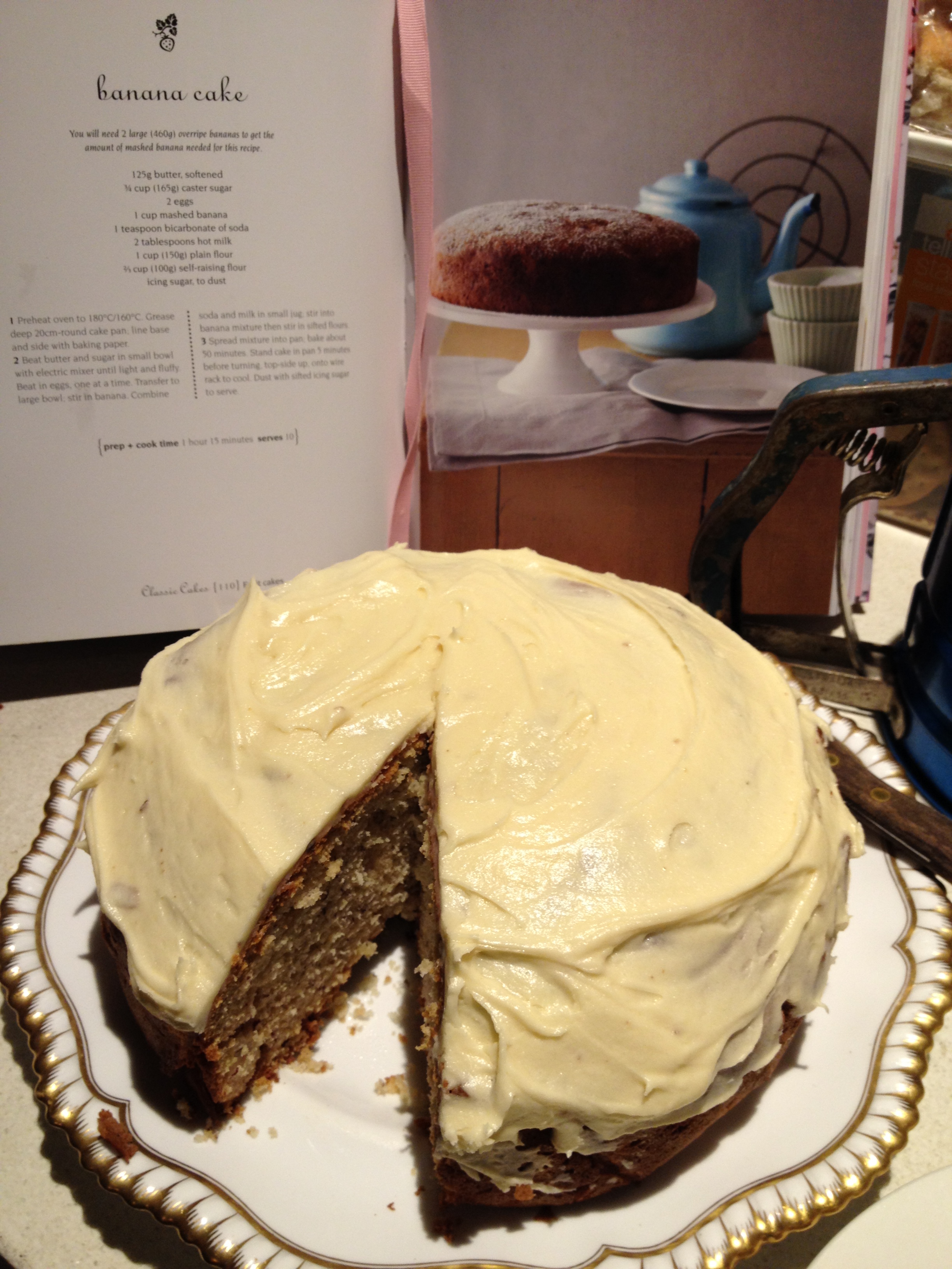 I finally put four brown bananas to good use before they liquefied in the fruit bowl by making a banana cake. I have to say this cake was not only edible, but a great success – Thank you Women’s Weekly Classic Cakes cookbook. I froze the cake and took it to Canberra for Spider Boy’s paternal family (“I baked you a cake, sorry about the missing piece”), thus cleverly saving myself (and my mother) from the rest of it. Spider Boy claims he doesn’t like banana cake, although will inhale banana bread at cafes.