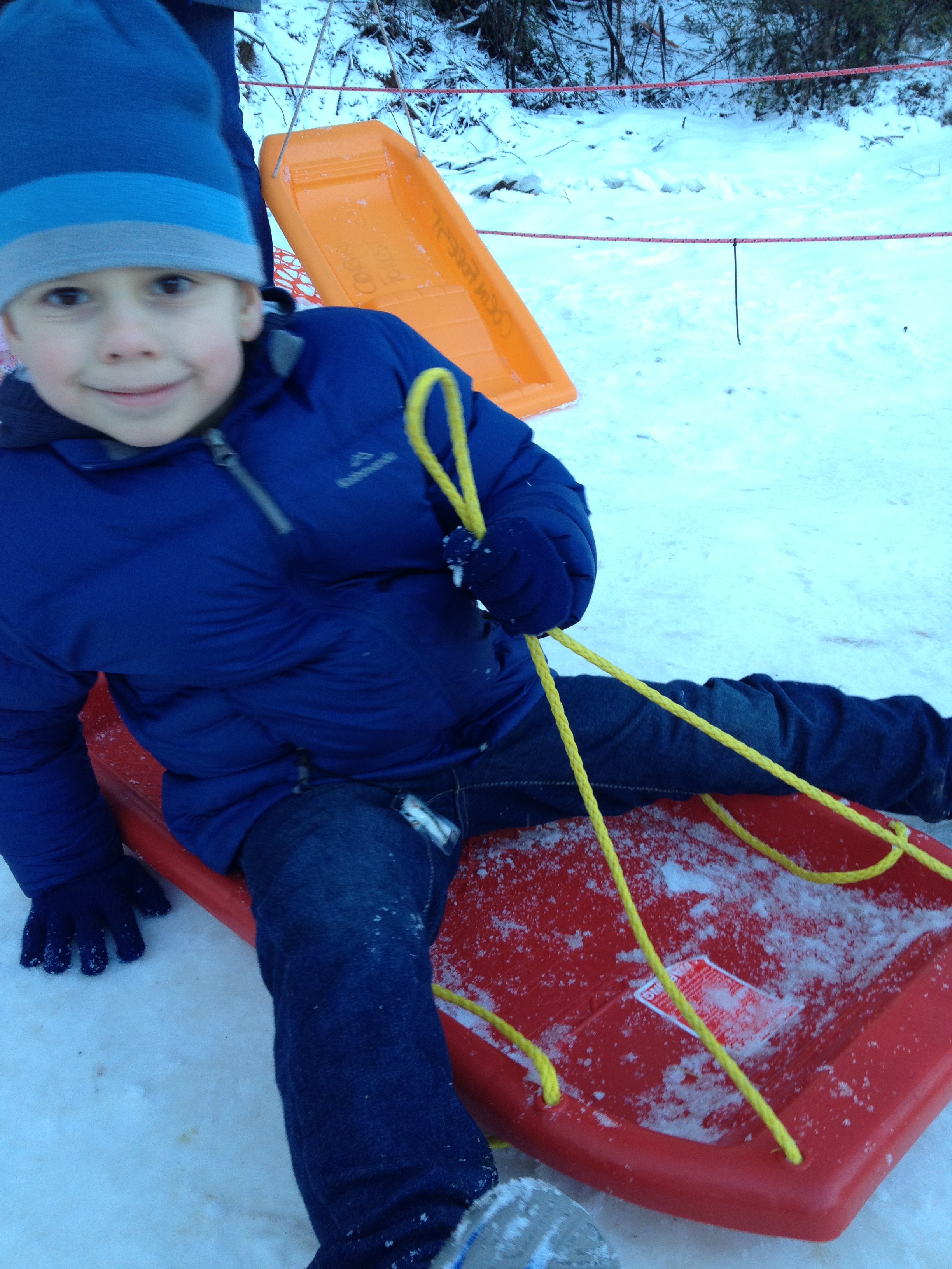 For $5 we hired a toboggan and Spider Boy was able to sled down the mountain gentle slope. “I love snow!” he said as he crashed into a bale of hay at the bottom of the run.