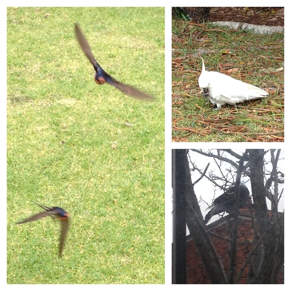 I never thought I’d be the type to be a birdwatcher, but oh, look what I’ve become. I’ve been enjoying magpies outside my window, reminding me of cool country mornings of childhood holidays. A walk across a local golf course saw me surrounded by swallows; diving, swooping, circling me and generally showing off. All I needed was Bambi and I would’ve been Snow frickin’ White (yeah, right, that’s ALL I need to become a Disney Princess). Once across the golf course there was no Bambi, just a flock of nut-cracking cockatoos.