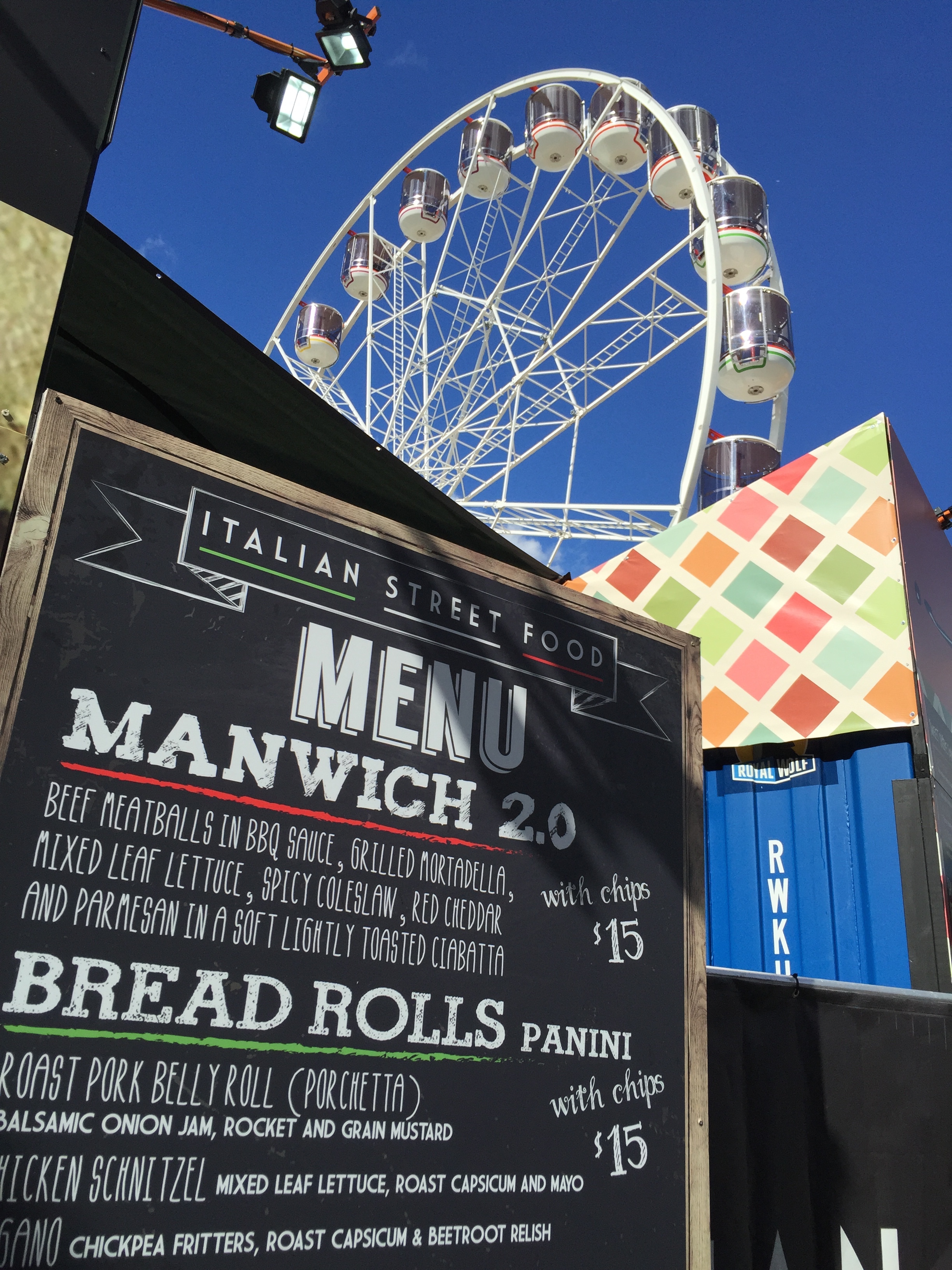 …tasty, trashy, nasty and dirty, just the way I love it. Lots of sticky food on sticks. Cheese on a stick, meat on a stick, cake on a stick, potato on a stick. The only thing NOT on a stick was Kewpie dolls (I didn’t see any, much to my disappointment). And don’t get me started on the Manwiches. Yes, that’s right, there was a “Manwich” stall. For when a sandwich just isn’t enough. Because of course no woman could eat a big sandwich (they haven’t met me, clearly). But “Womanwich” just doesn’t have the same ring, does it?