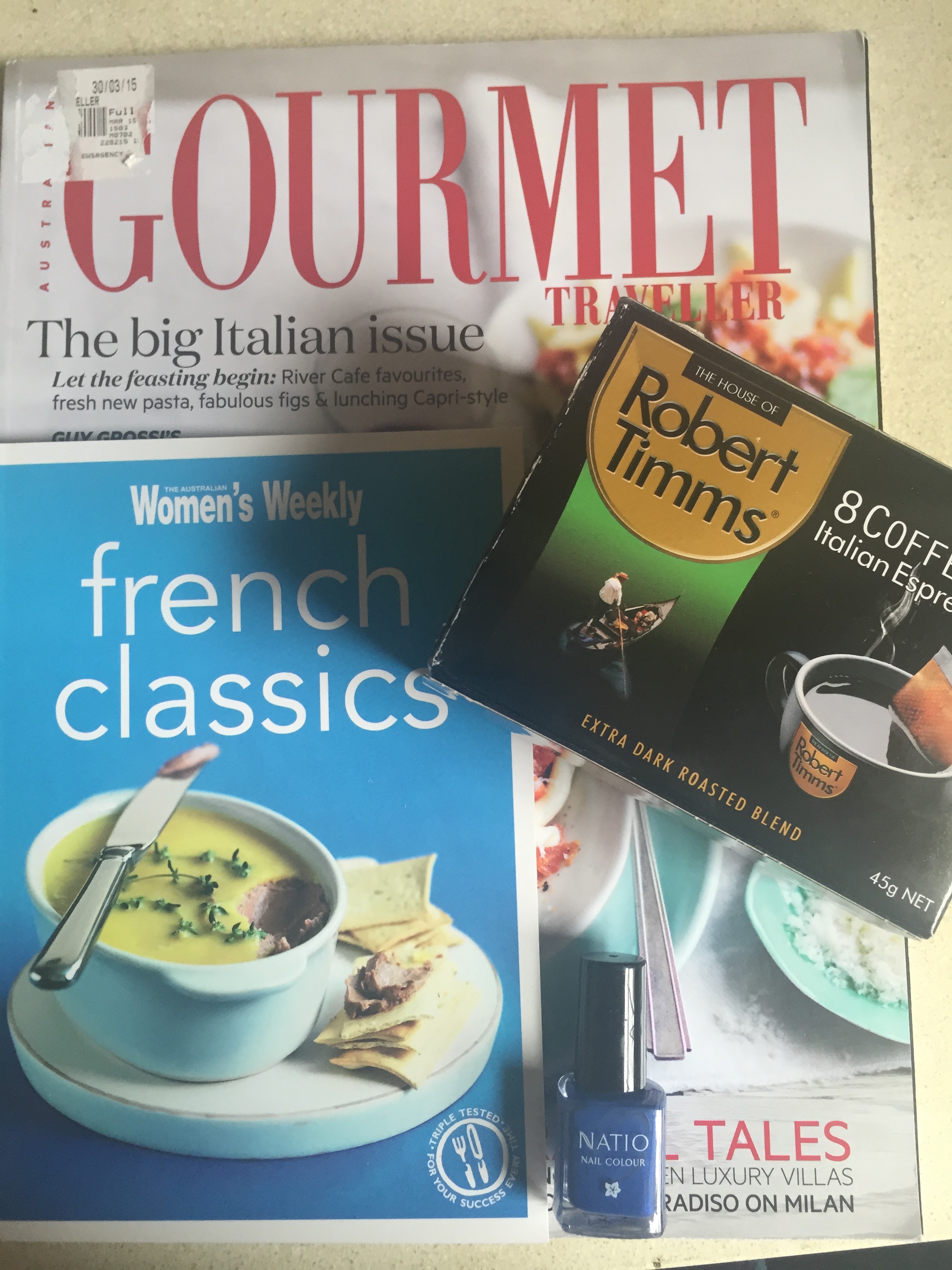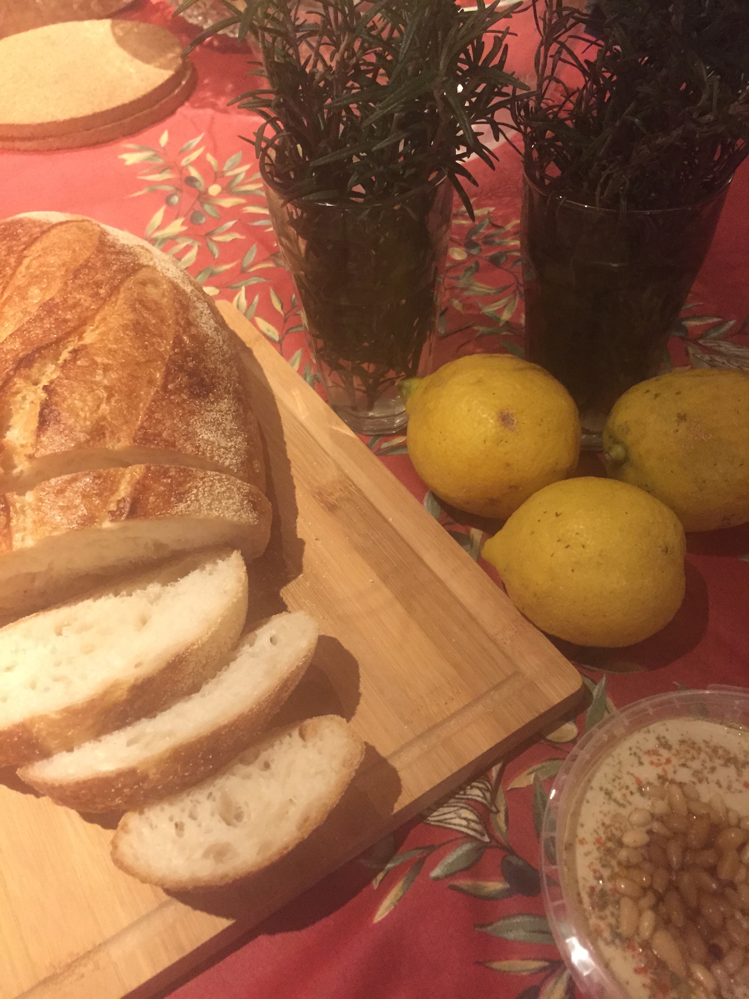 A good friend from Melbourne came over for dinner. I’m no domestic goddess so it’s not like he came all the way from Melbourne for my great cooking. He was in Sydney on business. I kept it simple with pasta, pesto sauce (from a jar), salad, a fresh loaf of sourdough and hummus. I had some fresh rosemary sprigs from my dad’s garden so stuck that in two glasses of water and voila – table centrepiece. Threw in a few lemons too to enhance the Tuscan vibe.IMG_5183_2