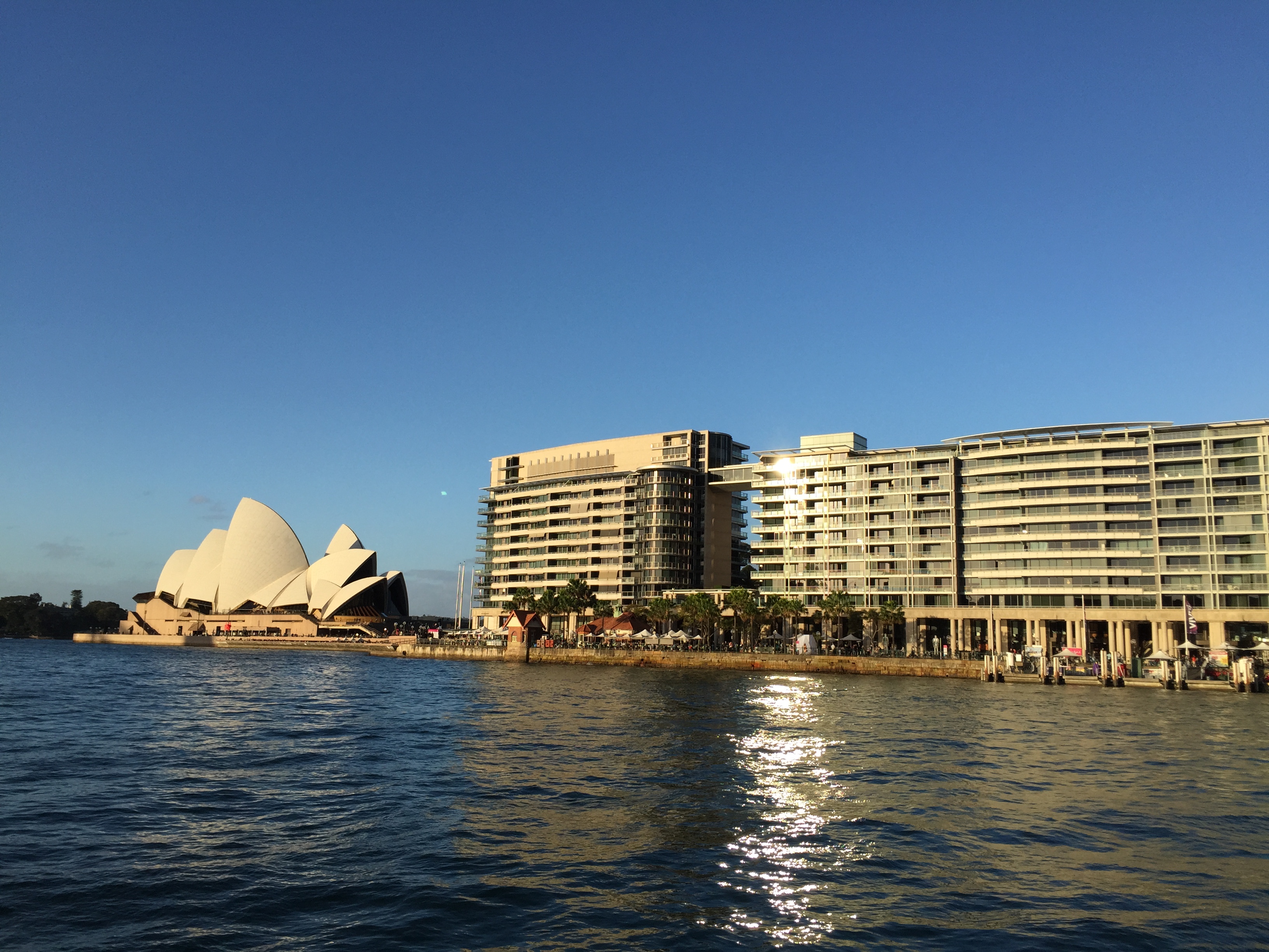 and on another day, afternoon sun bouncing off the water at Circular Quay.