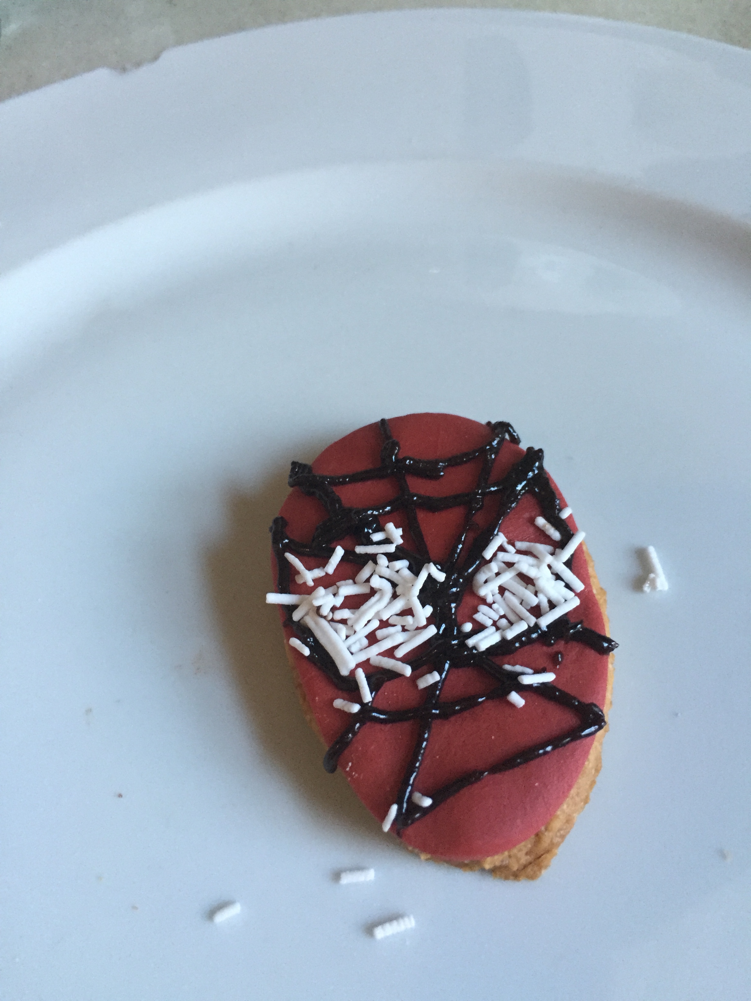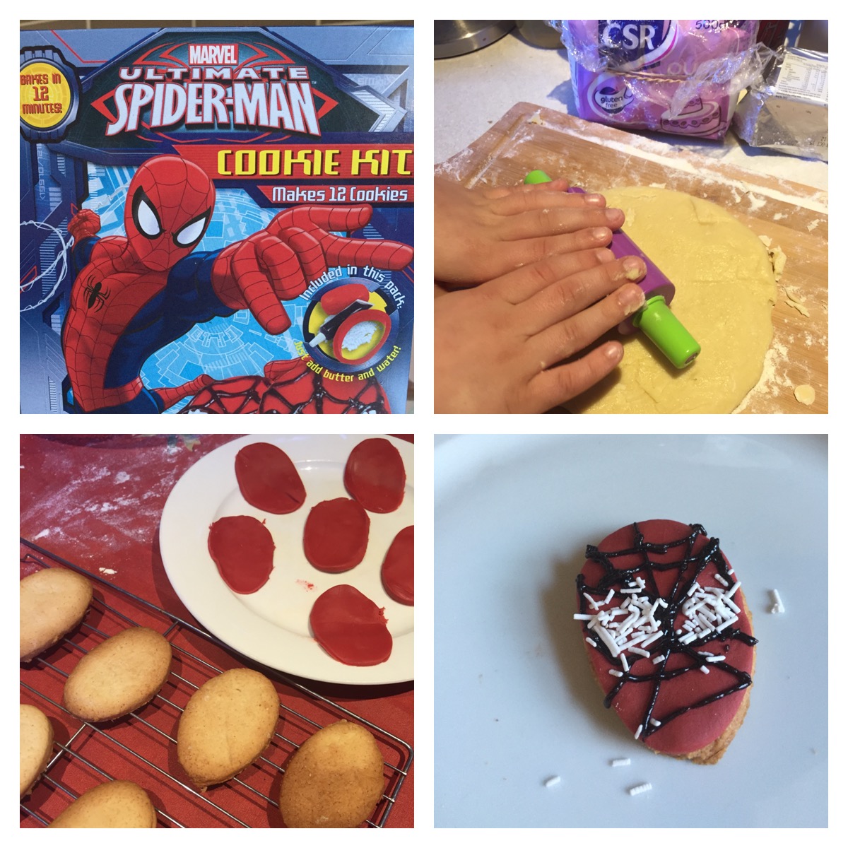 During the recent school holidays Spider Boy decided he wanted to bake (or me to bake) Spiderman “cookies” from a box his eagle-eyes spotted in the supermarket.