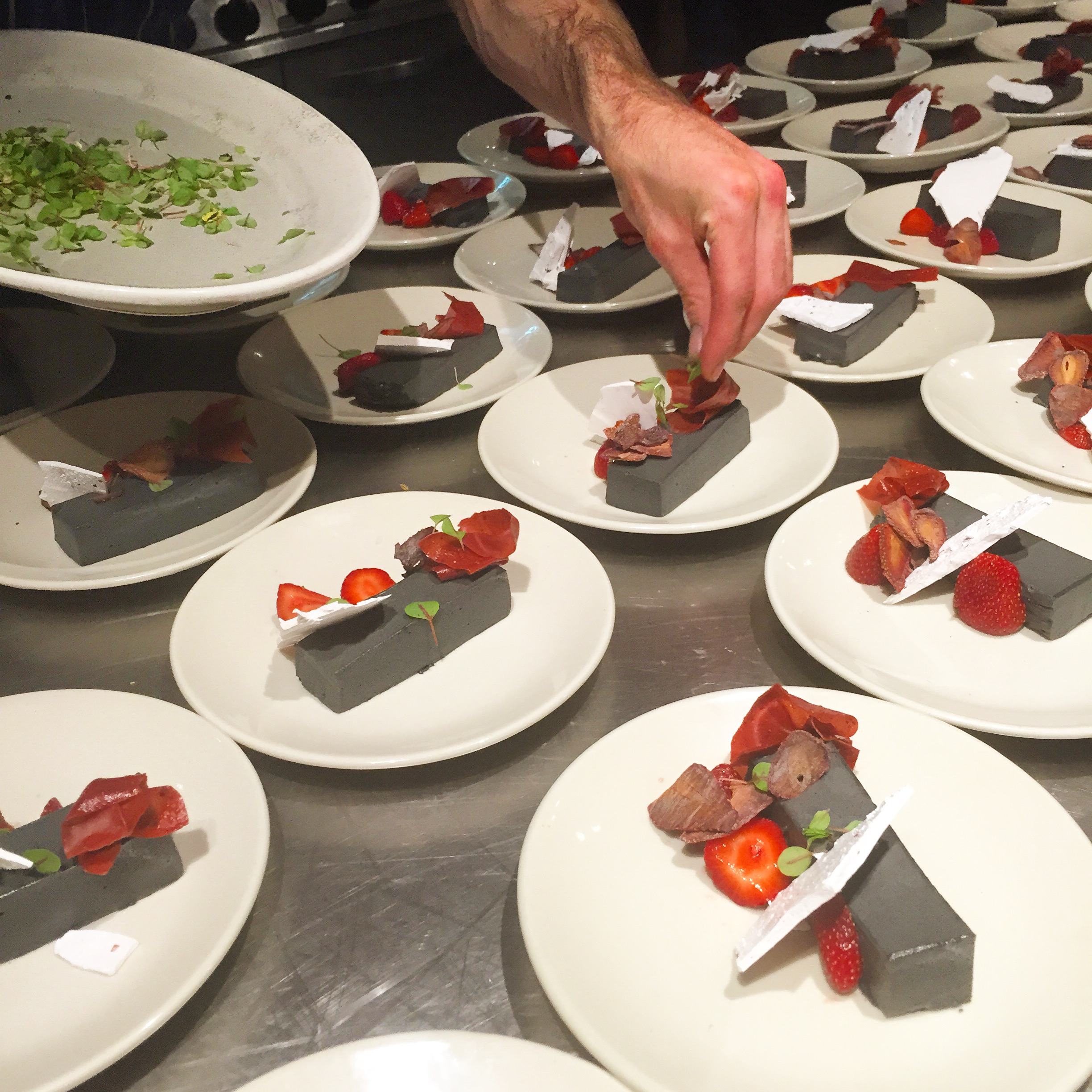 The dessert of black sesame bavarois, strawberries, pink peppercorn meringue and sorrel looked and tasted beautiful and was the perfect way to finish dinner.