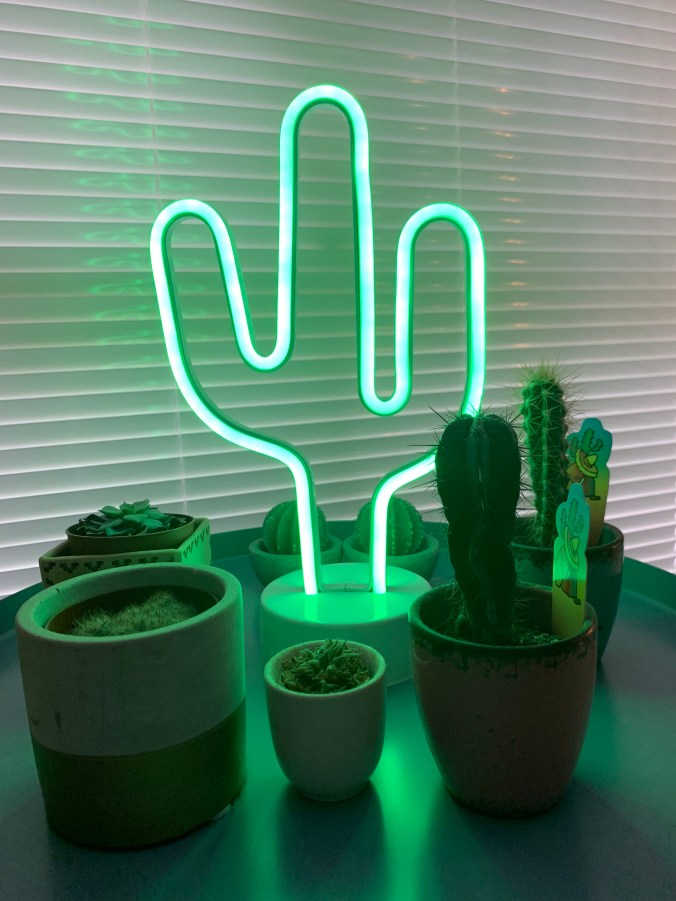 I set up my cactus station with a glowing green cactus from Kmart (I think).