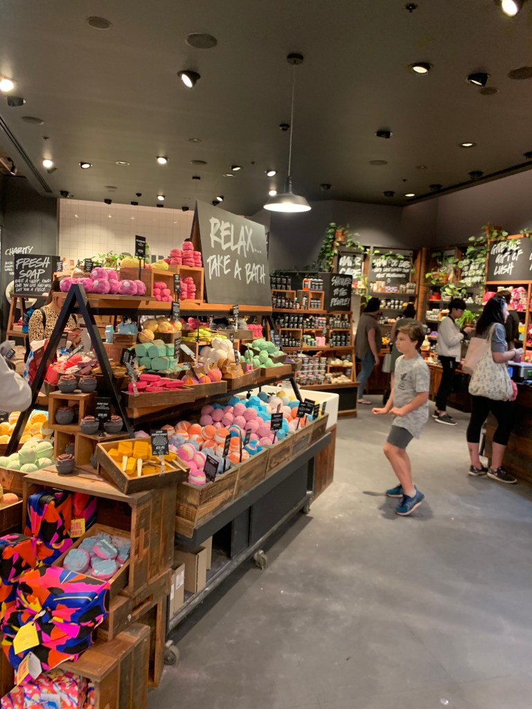 What to do in the school holidays on a day off from work? The 11-year-old son formerly known as Spider Boy was annoyed that he had to go to Vacation Care the next day, so I told him we could do whatever he wanted (within reason) today. He declined offers of ice-skating and movies; top of his list was to go to Lush, the bath products shop.