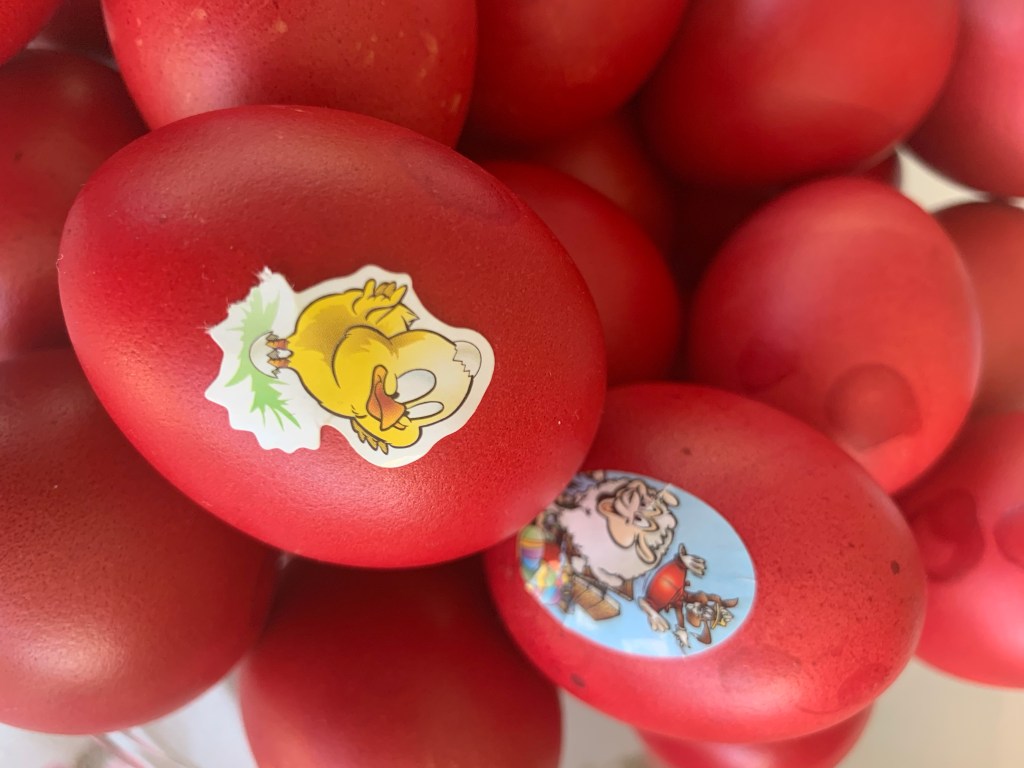 Before the Easter holidays ended, we managed to fit in another Easter, Greek Easter, with family friends of George’s dad. George found a canine friend there. I still haven’t managed to get him a dog. I can’t remember this dog’s name, but I think it was a Greek name and she’s part husky.