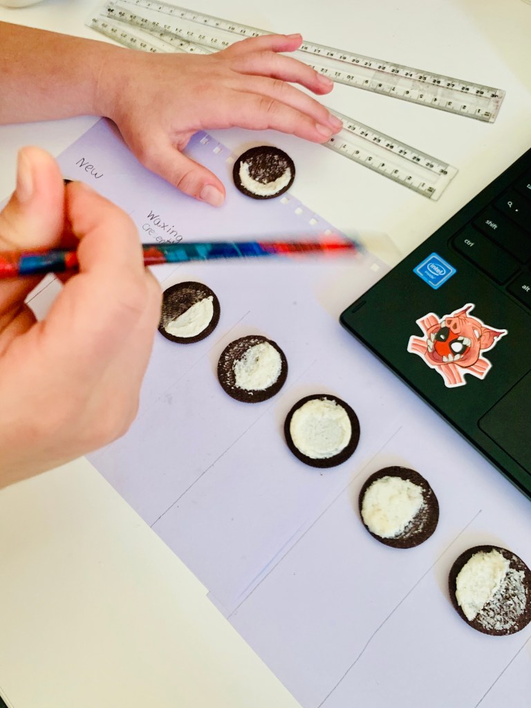 The last week of home learning I enjoyed helping him with an assignment about the phases of the moon, done with Oreo cookies. We learnt all about the waning and waxing gibbous, which somehow I’d escaped at school so it was all new to me.