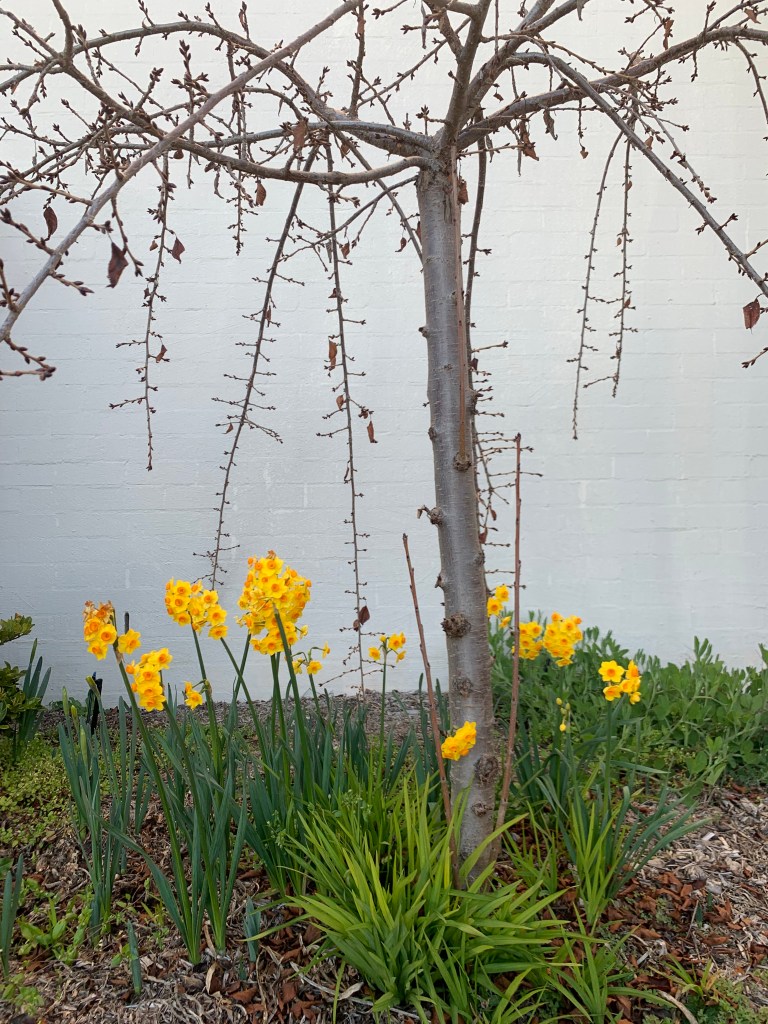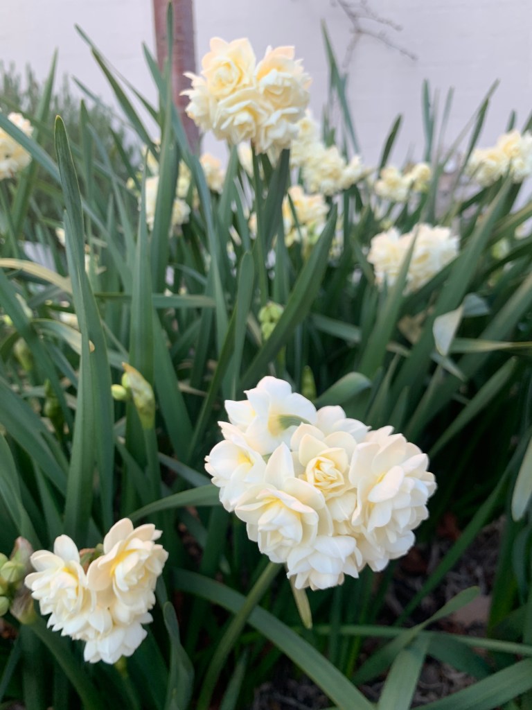 The Winter flowers in our townhouse complex are in bloom, the fragrance of yellow and white jonquils on the breeze.