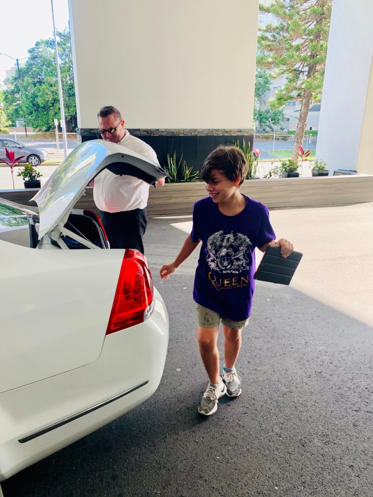 It turns out that when I was booking transport from Brisbane Airport to Surfer’s Paradise, I got a bit confused; there was a train from Brisbane airport to Nerang on the Gold Coast, and then I THOUGHT I’d booked a shuttle bus from there to our Surfers Paradise hotel. When we arrived at Brisbane airport I went to the booking desk and realised I’d booked the “car pick up service”. I imagined it to be like an Uber. Since it had already been paid for and I was in holiday mode, I thought we may as well just go with that.